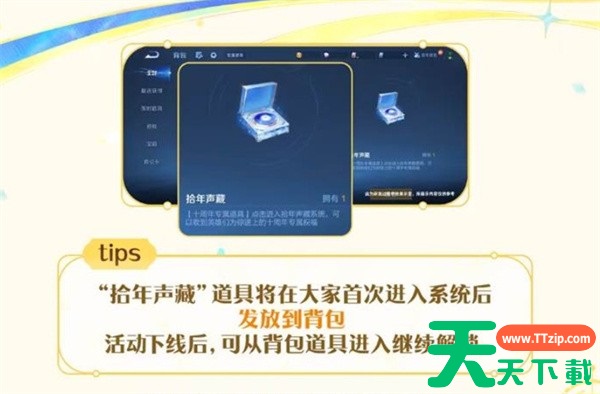 玩家首次进入活动系统后,“拾年声藏”道具将自动发放至背包。