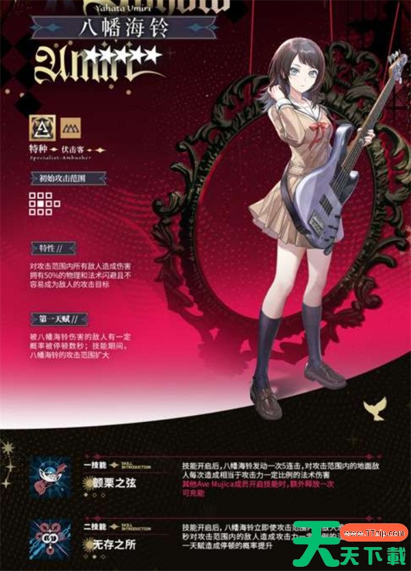 八幡海铃作为本次明日方舟与Mujica联动的角色,玩家通过活动能够免费获得角色,许多玩家好奇角色的强度如何,是否值得培养呢,天天下载Ttzip就为大家详细的进行解析,帮助大家更好的了解有哪些适用场景,快来一起看看吧!