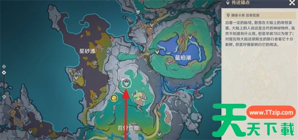 或绕路前往右侧,顺路开启蓝珀湖传送锚点后再进入。