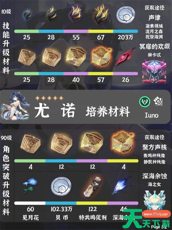 尤诺作为鸣潮v2.6版本即将上线的全新角色,许多玩家好奇角色培养需要哪些资源,天天下载Ttzip就为大家提前进行介绍,帮助更好的获得,快来跟随天天下载Ttzip一起看看吧!