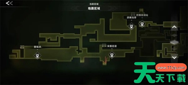 采掘区左边:下落进入地下区域,到角色站立位置即可找到宝箱。