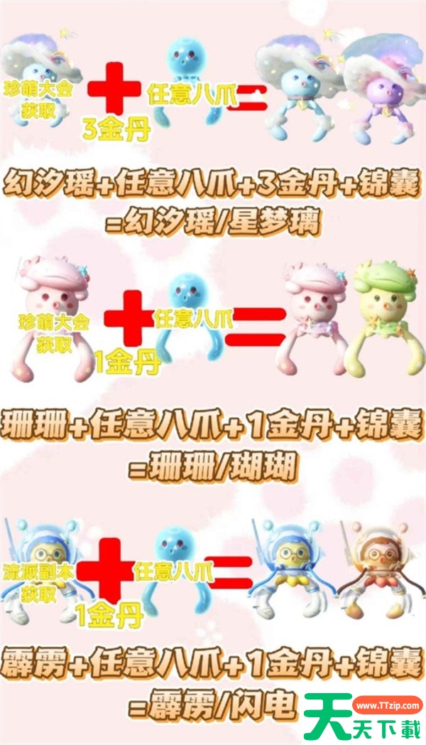 幻汐瑶(珍萌大会) + 任意八爪 + 3金丹 + 锦囊 → 幻汐瑶/星梦璃