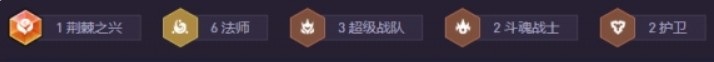 2星拉克丝-核心输出,4法师羁绊,2斗魂前排,一个合格的主坦/副坦(如皇子、赵信等)