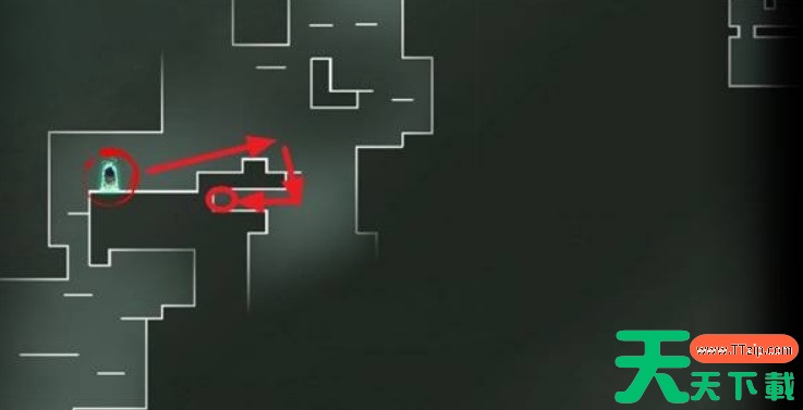 从通道下来后,会自动激活一个石碑,石碑处向左前进,进入一个上下空间较大的区域。