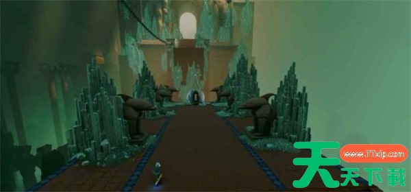 穿过大门后的小路平台,平台周围有大量水晶雕像,石板就在平台上。