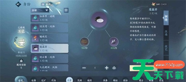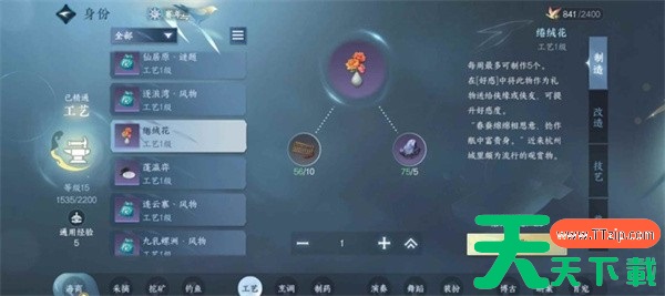 工艺1级配方:蓬瀛弈与绻绒花,每周各可制作5个,增加好感度效率极高,必须制作。