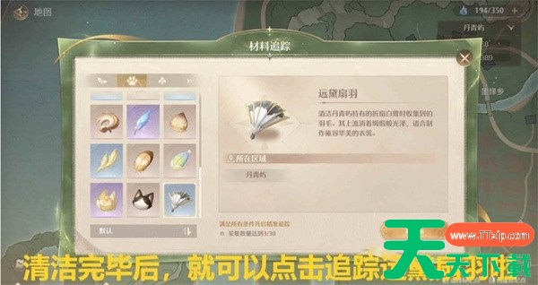 完成一次清洁后可开启该素材追踪,后续可按地图指引采集