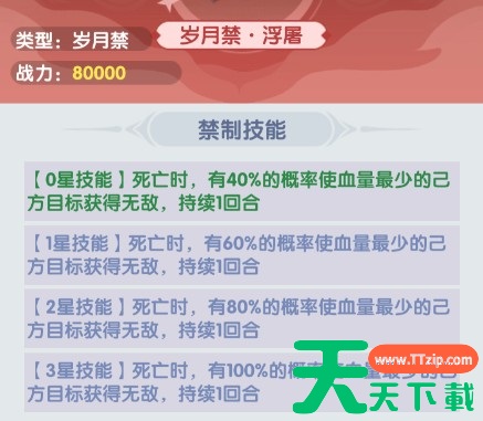 死亡后附加无敌盾,适合墨智、端木极等前排角色。即使朱雀印的免疫效果用完,浮屠的无敌盾也能让他们多站一回合,为队友争取时间。