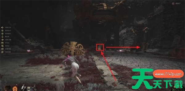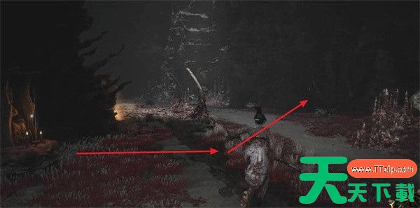 路线:背对神龛 → 左拐 → 开阔区 → 右走