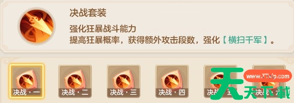 增加破军无双技能的攻击次数,并大幅提高使用此技能时的狂暴概率。