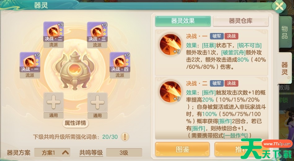 梦想世界长风问剑录之中有着丰富的器灵可供玩家选择,玩家能够自由的进行搭配,帮助玩家更好的提升角色能力,天天下载Ttzip就为大家带来决战器灵的介绍,快来一起看看吧!