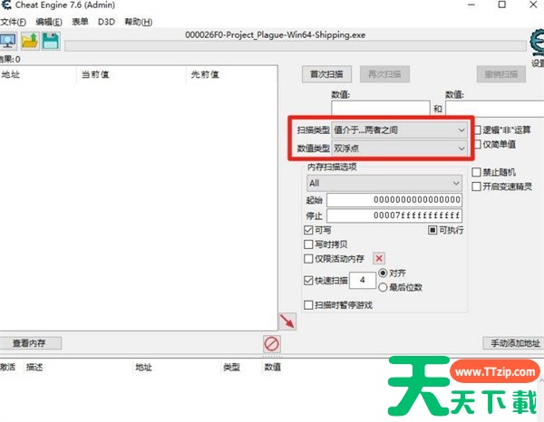 1、打开CE,设置数据类型为【双浮点】,搜索范围设置为“数值在……之间”,例如998~1002。