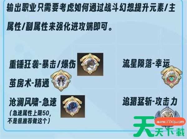 选择与你职业契合的主属性(力量、敏捷、智力)以及对应元素强化、暴击、急速等副属性。