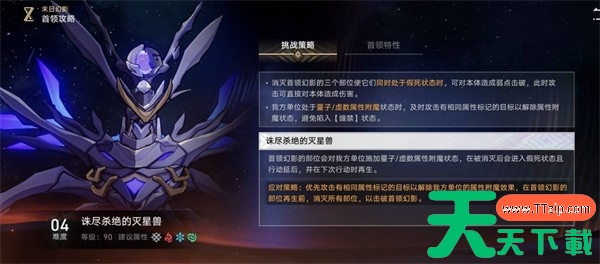 在崩坏星穹铁道3.4版本中,末日幻影将为玩家带来更多的挑战。玩家在完成上半场BOSS挑战后,将迎来下半场的BOSS灭星兽。该BOSS具有独特的部位击破机制与附魔系统,玩家的挑战将会更加困难。今天天天下载Ttzip将为大家带来下半BOSSS灭星兽的打法指南,供有需要的玩家进行参考。