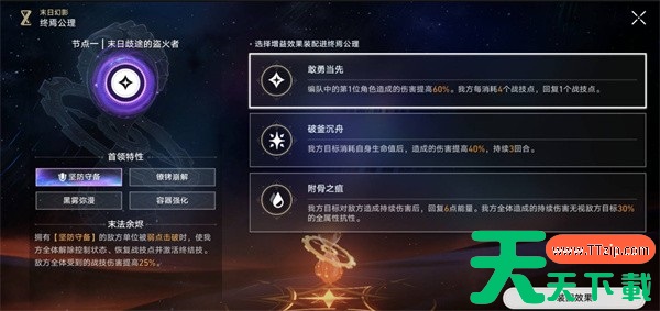 敢勇当先:首位角色伤害+60%,4战技点返1,推荐白厄/大黑塔队