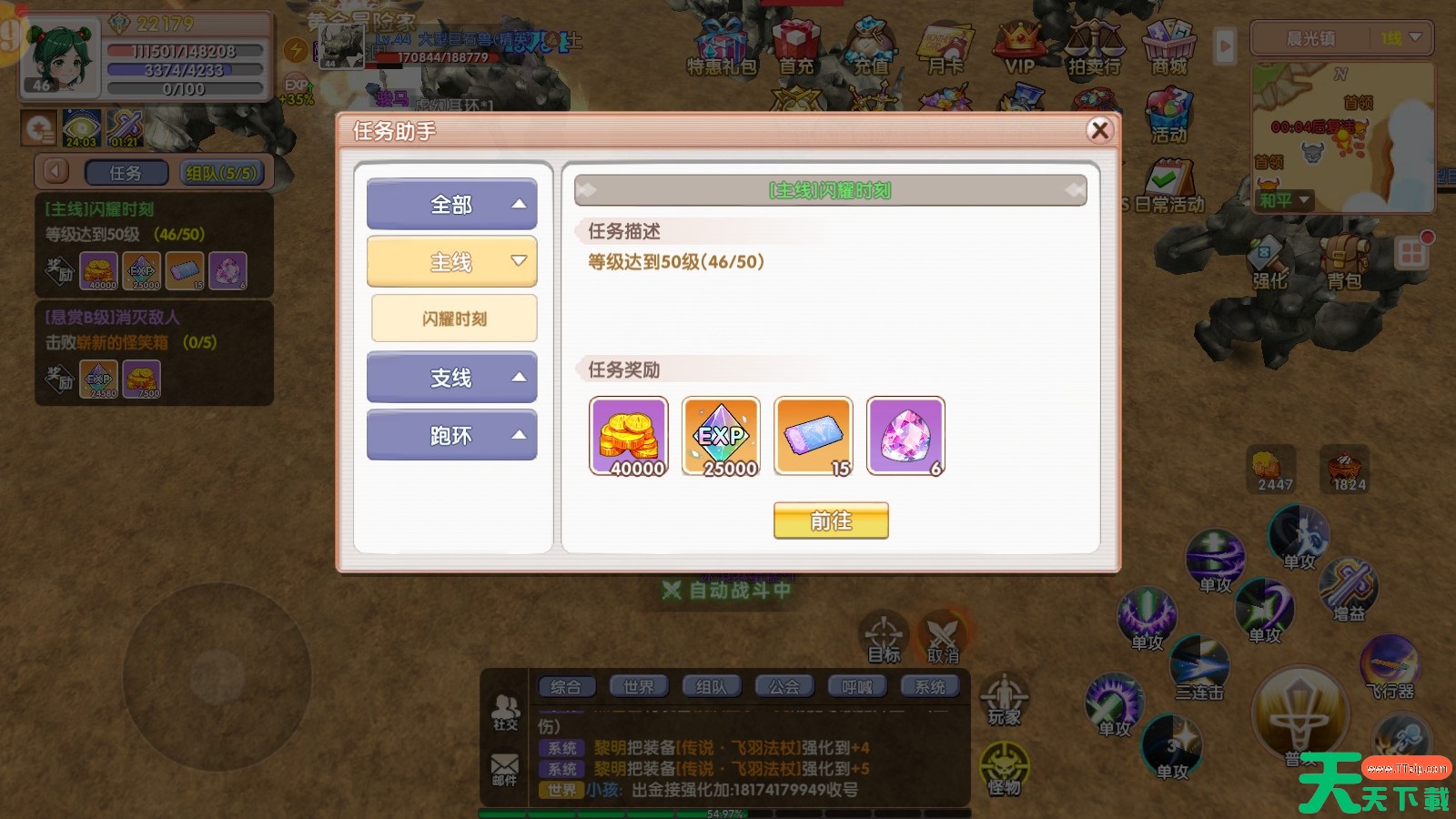 主线优先,拒绝卡级:0-30级阶段,主线任务经验奖励最高且解锁核心功能(如5级装备强化、7级飞行器)。优先推进主线,避免过早投入支线或活动。