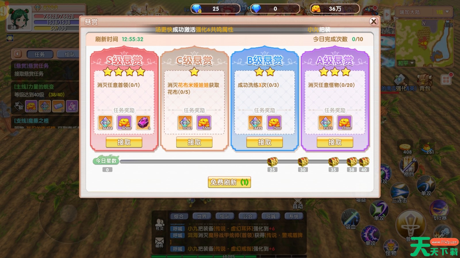 悬赏任务玄学:连续完成3个C级任务后使用刷新,提升SS级任务概率。