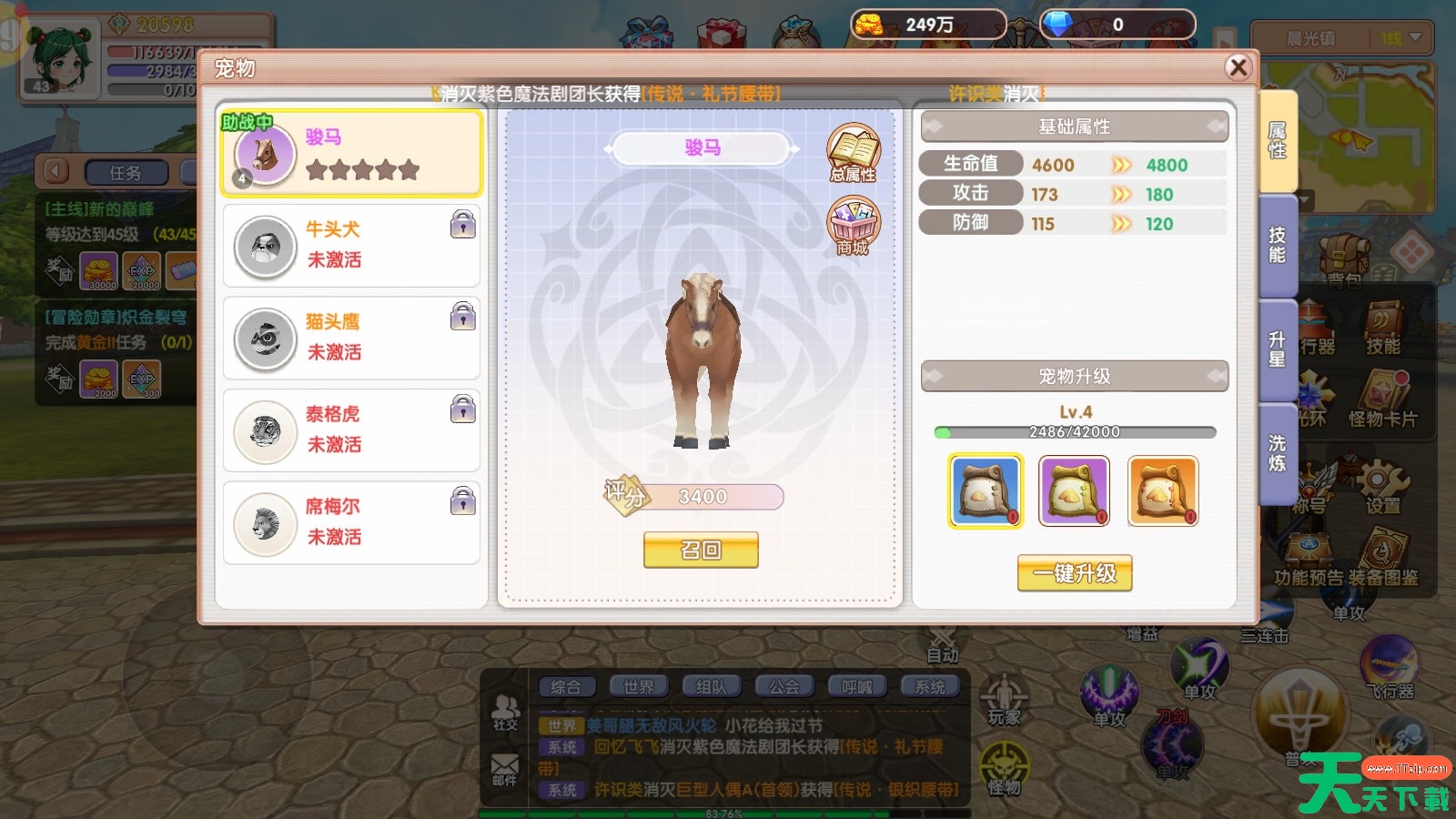 初期免费宠物足以过渡(40级解锁宠物系统),优先提升“拾取范围”属性节省刷怪时间。