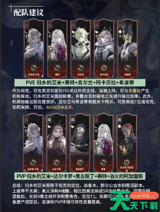 银与绯归乡的艾米阵容怎么搭配?归乡的艾米作为当下最为热门的角色,接下来天天下载Ttzip将为大家介绍一下任何进行搭配,将你的归乡的艾米角色的战力发挥到最大。