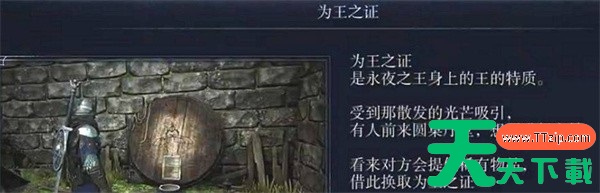 在艾尔登法环黑夜君临中,击败BOSS永夜之王即可获得道具【为王之证】,但很多玩家不清楚该道具具体的使用和兑换方法。今天天天下载Ttzip将为大家带来为王之证的获取与使用方法,供有需要的玩家进行参考。