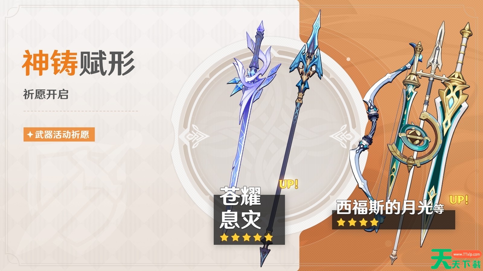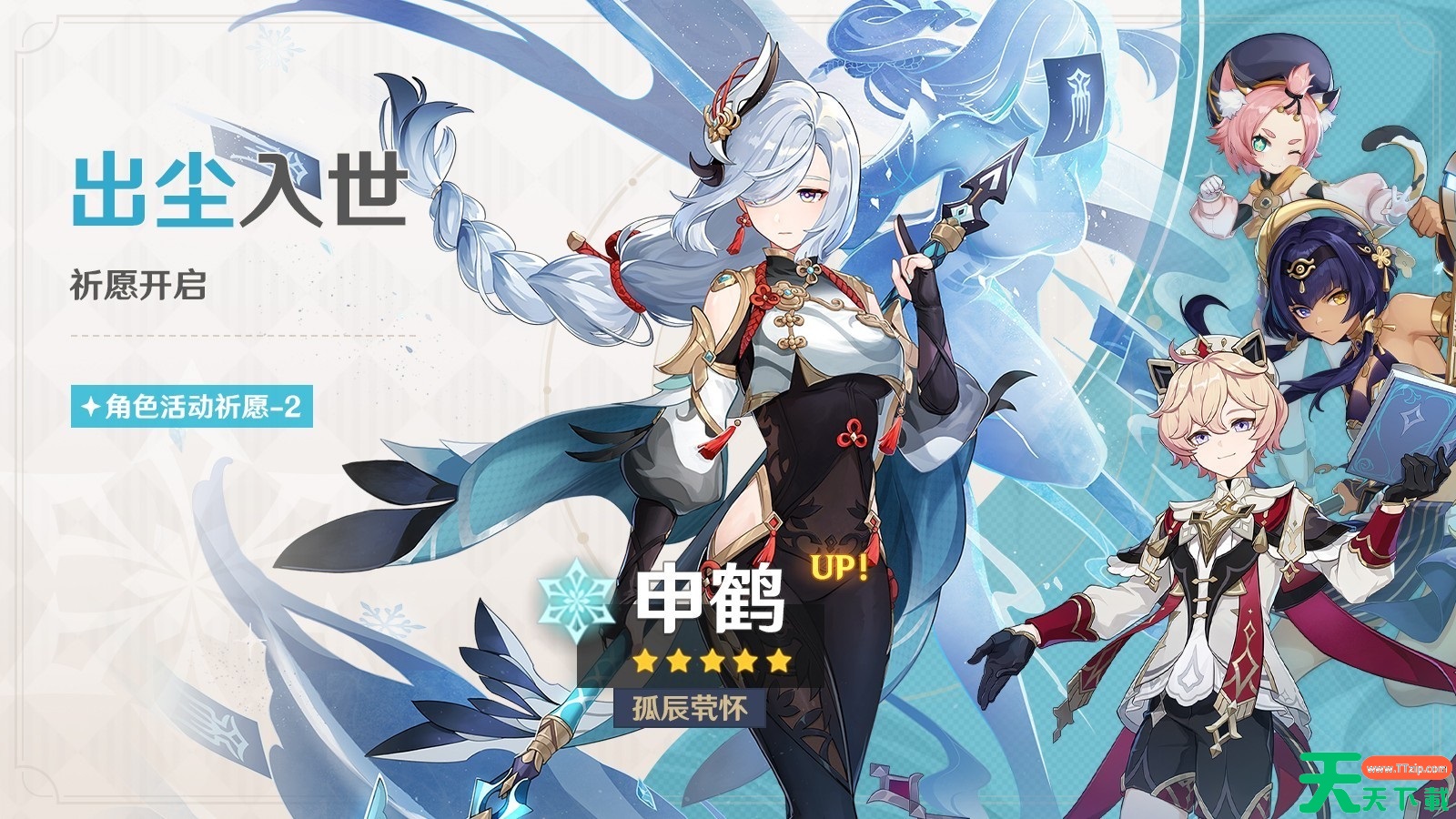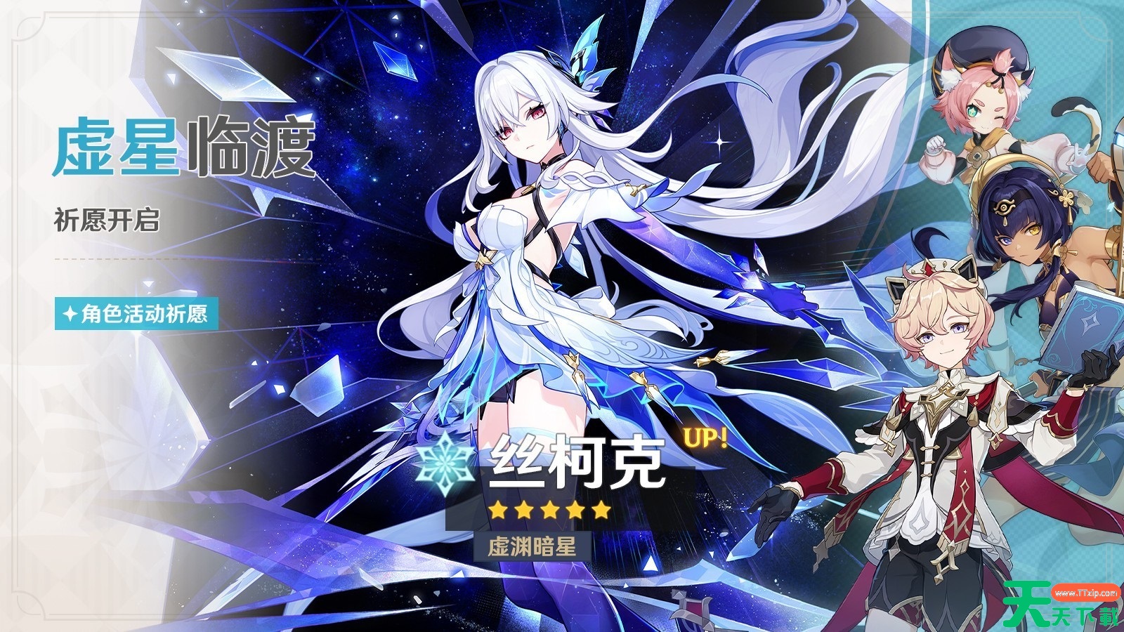 5.7版本更新后至2025年7月8日17:59,角色活动祈愿「虚星临渡」与角色活动祈愿-2「出尘入世」开启,全新限定五星角色「虚渊暗星·丝柯克(冰)」与限定五星角色「孤辰茕怀·申鹤(冰)」迎来概率UP。全新四星角色「颂礼祝祭·塔利雅(水)」将出现在角色活动祈愿「虚星临渡」、「出尘入世」中,获取概率大幅提升。