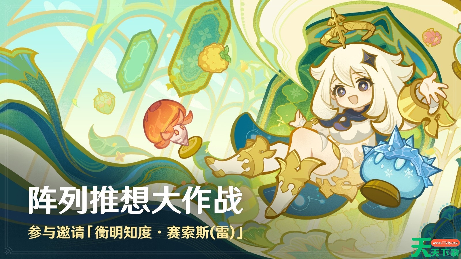 5.7版本中,全新版本主题活动「阵列推想大作战」将会开放。活动期间,旅行者可以体验「茹果食补大调研」和「伙伴冒险大战记」两个玩法,完成各种目标可获取「推想记录」。累计获取指定数量的「推想记录」后,可邀请「衡明知度·赛索斯(雷)」加入队伍,还可获得原石、智识之冕等奖励。