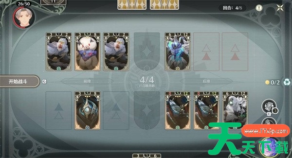 主角选择“坎特雷拉”,被动提供前三回合减伤,有效提升容错率。
