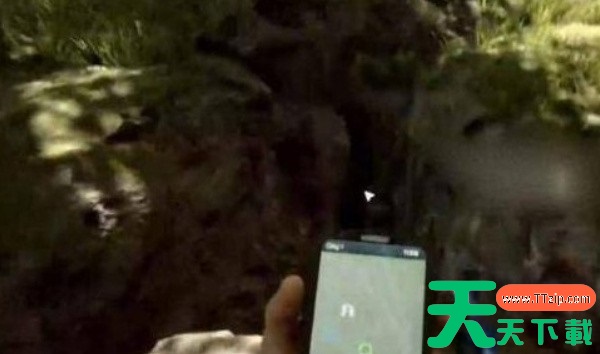 抵达绿圈后,你会发现附近有一条小溪。沿着小溪岸边仔细搜索,可以在靠山的一侧发现一个不起眼的山洞入口。