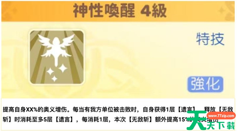 加百列另外一个重要被动,1级就可以提高30%的奥义增伤,当身上挂了【遗言】的BUFF时,下次奥义可额外再增加至高75%的增伤。