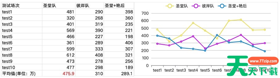 我们分两个场景测试,各测试10场,公平期间,我们所有队伍均不带任何增益拐: