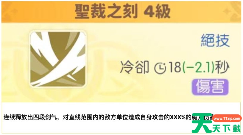 加百列的小技能,可以随着共鸣等级提升。技能路劲内的目标均可受到伤害,不会因为人数衰减,4段剑气伤害分开结算。享受【恩赐】状态加成,伤害也非常不俗。奥义CD时主要靠此技能打小爆发。