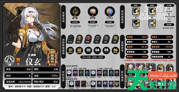 一图流有面板参考、技能升级推荐、音擎推荐、影画选择、驱动盘推荐、配队推荐、材料培养。认真看完一图流相信大家会对仪玄培养以及玩法有一个详细的了解。大家对一图流有什么建议可以在评论区说出您的想法,我会持续不断地更新一图流。