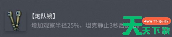 3、炮队镜:观察半径提高25%,静止3秒后激活,可辅助侦查