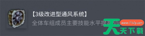 4、3级改进型通风系统:所有乘员主要技能+5%,全方位性能增强
