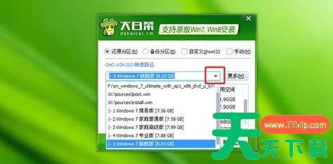 6、选择安装版本之后,点击“还原分区”,选择原版系统安装盘符点击确定即可。