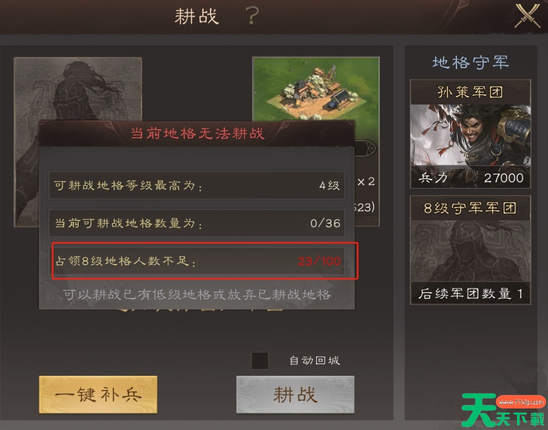 (1)执行耕战指令的部队与耕战地守军战斗并获胜,经过30分钟开发后土地等级提