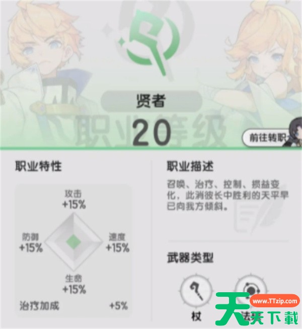 在杖剑传说中为玩家提供法师和战士作为初始职业选择,而当达到一定等级时,法师将能够转职为贤者。该职业有着极大的AOE法术和各类辅助技能。今天天天下载Ttzip将为大家带来贤者转职推荐,供有需要的玩家进行参考。
