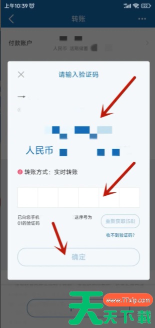 打开转账汇款,打开我要转账,点击下一步,输入手机验证码,转账汇款成功。