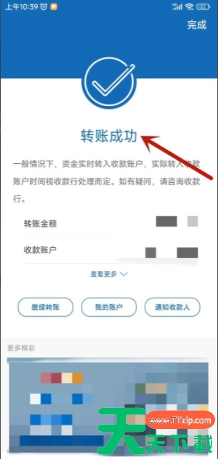 点击确定,验证通过后,页面会显示转账成功提示,即表示转账汇款已经成功。