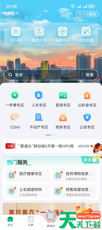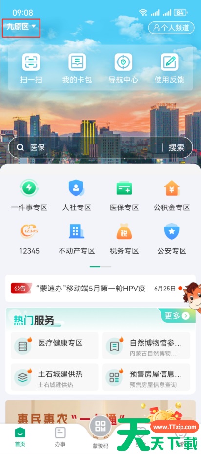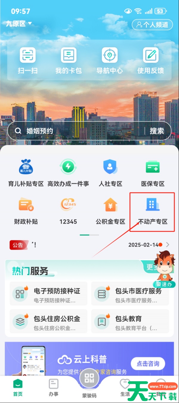 3.在首页点击“不动产专区”,完成人脸核验授权。
