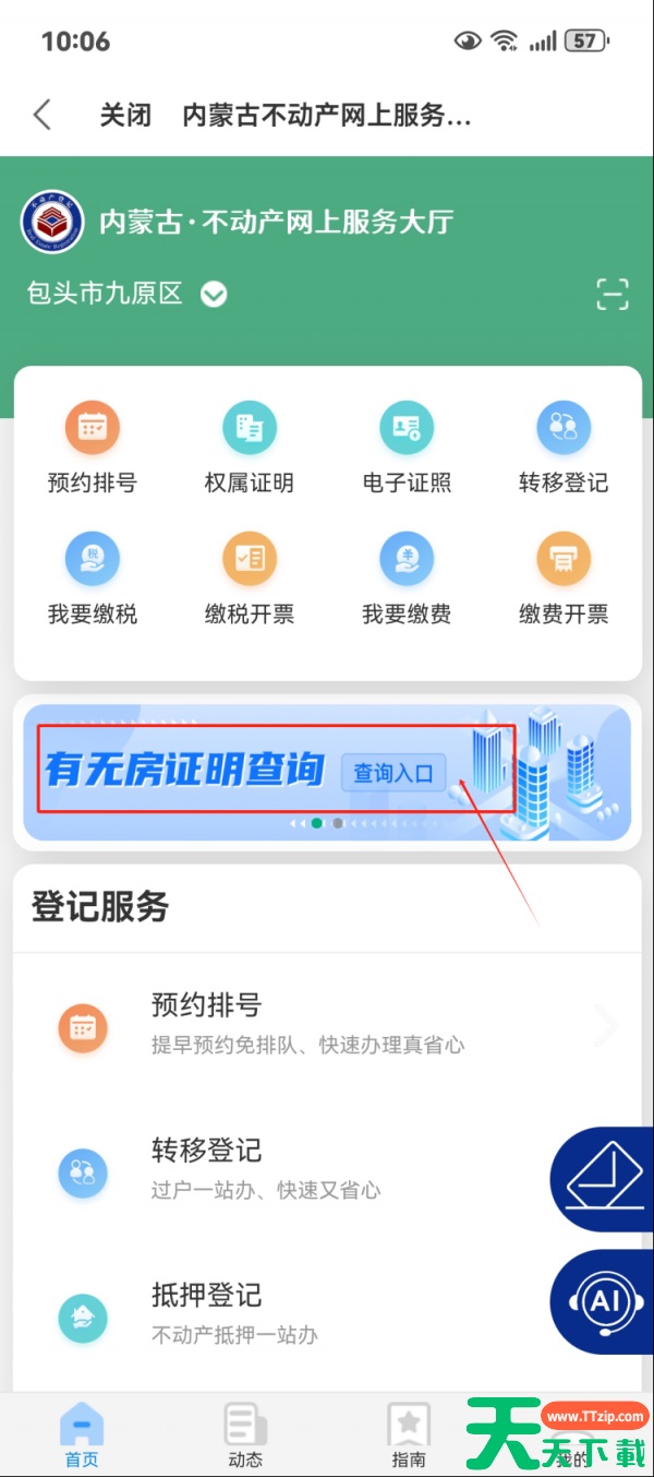 4.进入不动产专区,点击页面中的“有无房证明查询”专题。