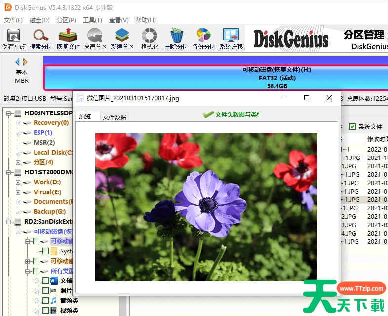 4、预览丢失的文件,查看文件恢复效果,扫描结果就是最终的恢复结果。图片、视频、音频、文档、文本文件等都可以双击打开,如果文件可以像下图这样正常预览,则说明文件没有损坏,可以被正常恢复。
