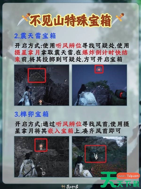 以上就是天天下载(ttzip.com)为大家带来的燕云十六声不见山特殊宝箱开启攻略,大家都了解了吗?还想要了解更多的内容那就请继续关注天天下载(ttzip.com)吧。 @天天软件站Ttzip
