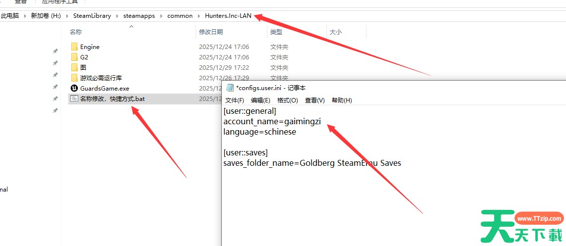 双击打开游戏目录下的“名称修改,快捷方式.bat”,找到“account_name=gaimingzi”,把“gaimingzi”改成自己想要的名字,保存。