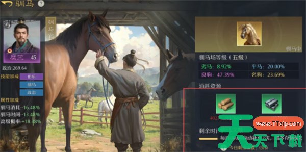 3、驯马操作建议:糜竺只需携带驯马技能,无需带政治技能。