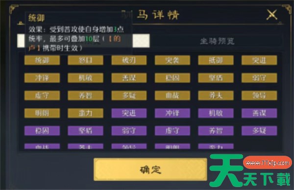 2、马匹主要提供武力、统率、政治 属性。