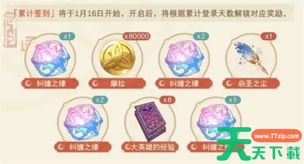 活动开启后,玩家通过累计登录即可领取对应奖励。完成指定签到天数,可获得纠缠之缘×10,用于角色祈愿。