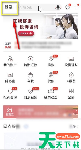 启动手机工商银行,点击登录按钮,如下图所示