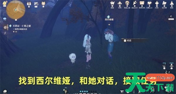 2、传送至【迷雾森林入口】锚点,追踪任务指引,找到西尔维娅并与其对话,正式接取任务