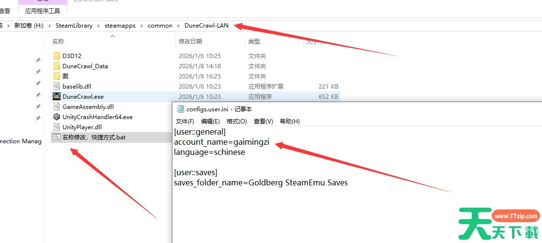 双击打开游戏目录下的“名称修改,快捷方式.bat”,找到“account_name=gaimingzi”,把“gaimingzi”改成自己想要的名字,保存。